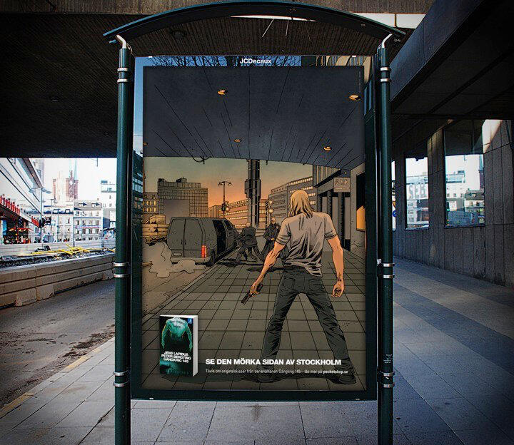 OOH campaign for graphic novel Gängkring 145. This one is an oldie but goldie, becoming an Epica nominee as well as a Resumé "Månadens Kampanj" gold winner. Perhaps a bit harder to see on a screen than IRL, the big idea is that the illustrations meld with the world around them, giving you a glimpse into the dark side of Stockholm. Click to enlarge.Idea • copywriting