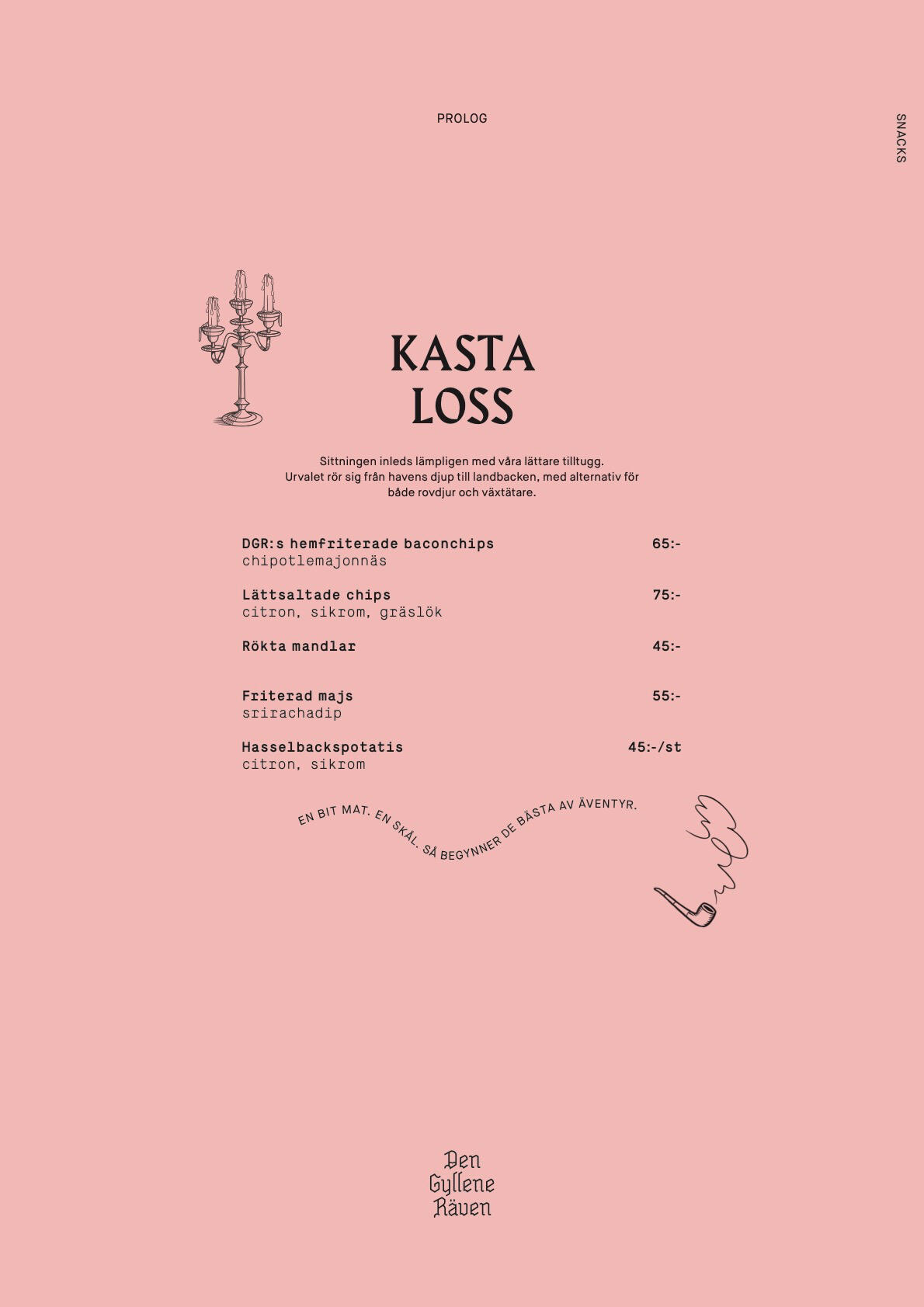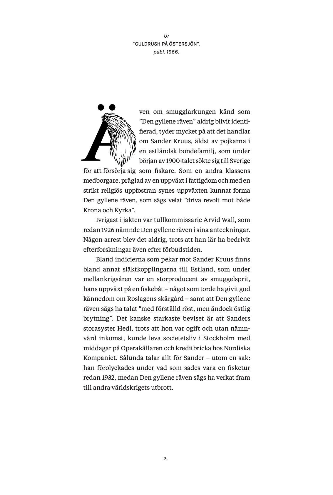 This has to be one of the most fun projects I ever worked on. In short: new restaurant in Norrtälje needed a name, preferably something creating some sort of storytelling. So, we created a fictional character called Den Gyllene Räven, a booze smuggler working in the archipelago around Norrtälje during the 1920's. They liked the idea so much that the story spread out over the menu and restaurant with news clippings, diary notes and more. Everything fictional, of course – it got so convoluted that I even wrote a fake in-universe film review from the 1950s, harshly criticizing a fictional Gylle Räven movie (it was a lazy cash grab, if I remember correctly).Idea • concept development • copywriting